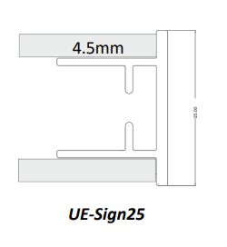 UE-Sign25 provides double-sided sign applications with a 25mm depth, delivering a striking yet elegant design. Its 2mm visible edge imparts a sleek, modern aesthetic to wayfinding displays and other uses. The system supports both single- and double-sided illuminated and non-illuminated wayfinding sign applications.