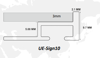 Features and Applications: Model: : UE-SS2010 Material : AL6063 Surface : Anodized up to 25 micron Depth : 9.7mm Length : 8 feet Display : Acrylic, ACP and Sun board Graphic insert up to 3mm. Installation : Hidden Screws, Double sided tape Suspension Clips with steel wires Application : Lit & non-lit Wall Mounted, Suspended, Projected and Table Stand display